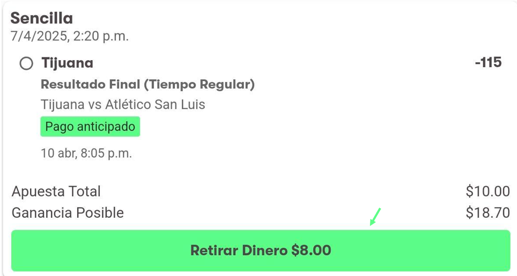 Una vez la apuesta ha sido confirmada no se puede cancelar. Sin embargo, algunas apuestas pueden tener la opción de hacer cash-out (retirar dinero), puedes verificarlo en el historial para revisar si tu apuesta tiene esa opción.