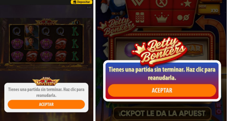 1. En el caso de los juegos en vivo, al perder la conexión el sistema te avisará que tu conexión se perdió.