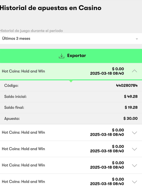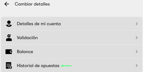 1. Número/código de jugada. Ingresa al historial de casino desde el icono de avatar de tu cuenta